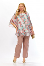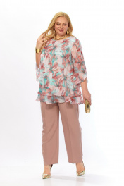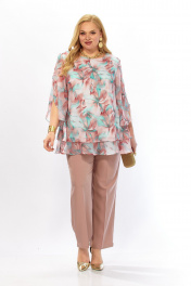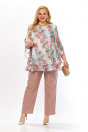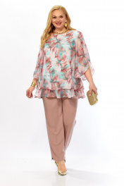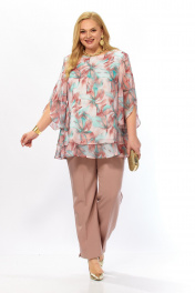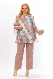 Блуза, брюки Элль-стиль 2213/14 мятно-бордовый-капучино - фото 1
