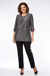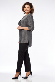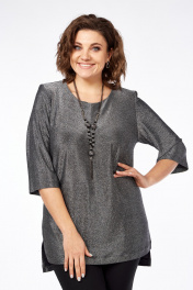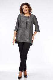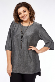 Нарядная блузка полуприлегающего силуэта из ткани с легким элегантным мерцанием. Горловина округлой формы. Спинка со средним швом переходящим в застежку на навесную петлю и пуговицу. Рукав втачной, свободный с фантазийным решением. Низ блузы ассимитричный в боковых швах разрезы