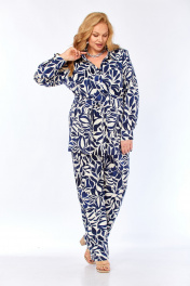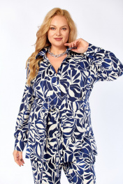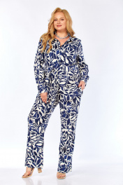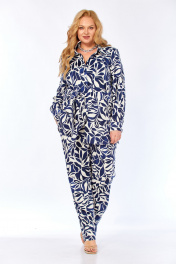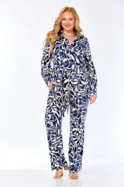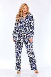 Блуза, брюки Элль-стиль 2299/1 синий_молочный_принт