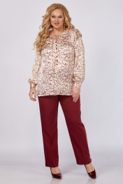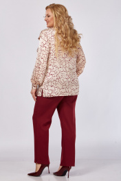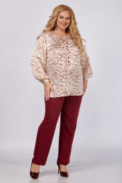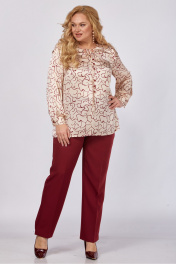 Блуза, брюки Элль-стиль 2375 бордовый_блуза_пудра_принт