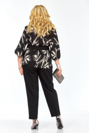 Блузка прямого силуэта выполнена из струящейся принтованной ткани, выглядит эффектно, создает современный стиль образу. Горловина аккуратной округлой формы. Рукав втачной, свободный с фантазийным решением, длина 7/8. В комплект входит пояс, низ обработан металлической бахромой, что служит элементом украшения. Средний шов спинки вверху переходит в застежку на 6 навесных петель, пуговиц. В боковых швах предусмотрены разрезы.