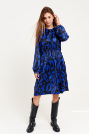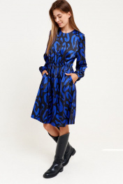 Приталенное синее платье из текстиля с карманами ELLETTO 1914