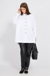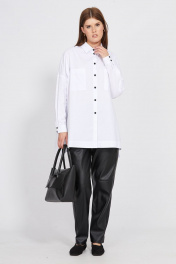 Демисезонная оверсайз блузка из хлопка с накладными карманами EOLA 2483 белый