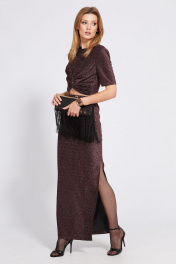Трикотажный комплект блузки и юбки с люрексом EOLA 2528 медь