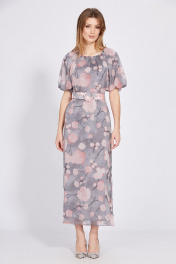 Платье Х-образного силуэта, длиной миди, отрезное по линии талии, выполнено из шифона. Спереди сборка по горловине. В среднем шве спинки потойная молния. Горловина округлолй формы. Рукав покроя реглан, одношовный, длиной выше линии локтя. Платье на отлетной по низу подкладке. В комплект входит ремень с обтяжной пряжкой. Длина платья: р. 42-46 - 133 см, р. 48-52 - 135 см. Длина рукава: р. 42-46 - 35 см, р. 48-52 - 36 см. 42 44 46 48 50 52 Длина по центру спинки 133 133 133 134 134 134 Длина рукава от горловины35 35 35 36 36 36 Объем по груди 88 92 96 100 104 108 Объем по талии 69 73 77 81 85 89 Объем по бедрам 108 112 116 120 124 128 Объем по низу 146 150 154 158 162 166 Объем рукава вверху 31 33 35 35 37 39 Объем рукава внизу 30 30 30 32 32 32