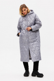 Пальто из плащёвой ткани с капюшоном демисезон классика EOLA 2769 серый