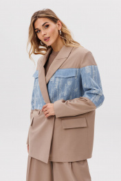 Жакет прямого силуэта из костюмной ткани с джинсом EOLA 2779 бежевый