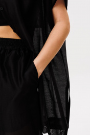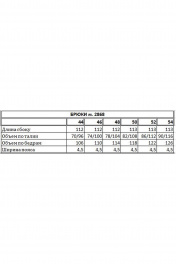 Брюки выполнены из плательно-блузочной ткани. Брюки прямого силуэта, на притачном поясе с эластичной тесьмой. Спереди боковые карманы с наклонным входом. Длина: р. 44-48 - 112 см, р. 50-54 - 113 см.