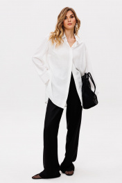 Брюки выполнены из льна. Брюки прямого покроя длиной в пол, на притачном поясе с эластичной тесьмой. Спереди боковые карманы с наклонным входом. Длина: р. 44-48 - 112 см, р. 50-54 - 113 см.