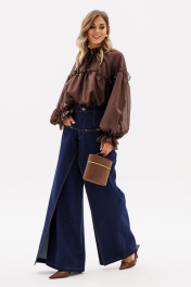 Брюки выполнены из плотного джинса. Брюки на притачном поясе, длиной до пола, расширенные к низу. Спереди верхние отлетные части, боковые карманы с фигурным входом. Застежка на пуговицу и молнию с гульфиком. На задних частях кокетки и накладные карманы. По переду брюки декорированы брендированной нашивкой из натуральной кожи. БРЮКИ м. 2898 44 46 48 50 52 54 Длина сбоку 110 110 110 111,5 111,5 111,5 Объем по талии 64-78 68/82 72/86 76/90 80/94 84/98 Объем по бедрам 106 110 114 118 122 126 Ширина пояса 4 4 4 4 4 4