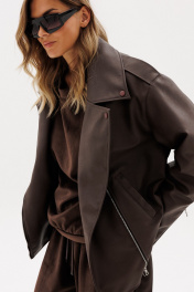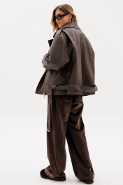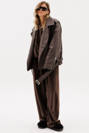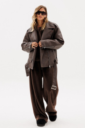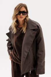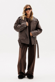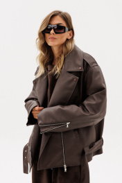 Куртка выпонена из эко-кожи. Куртка прямого силуэта, покроя "oversize". Спереди прорезные карманы, лацканы, один клапан справа, и смещенная застежка на молнию. На спинке фигурные подрезы от плечевого шва до боковых. Вортник пиджачного типа. Плечевой шов удлинен. Рукав рубашечного покроя, двухшовный. В заднем шве рукава молния с металлическими звеньями. В окаты вставлены погоны, по низу куртки протянут пояс из основной ткани с металлической пряжкой. На концах воротника, лацконов, по погонам и клапану пробивные кнопки. Куртка на утепленной притачной по низу подкладке. Температурный режим: от 0 до -5 С. Длина куртки: р. 44-48 - 65 см, р. 50-54 - 65 см. Длина рукава: р. 44-48 - 78 см, р. 50-54 - 79 см. 44 46 48 50 52 54 Длина по центру спинки 65 65 65 65 65 65 Длина рукава 78 78 78 79 79 79 Объем по груди 128 132 136 140 144 148 Объем по талии 124 128 132 136 140 144 Объем по низу 122 126 130 134 138 142 Объем рукава вверху 49 51 53 53 55 57 Объем рукава внизу 30 30 30 32 32 32