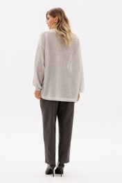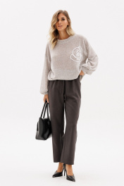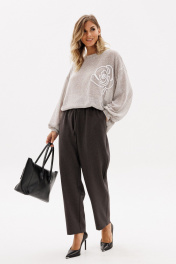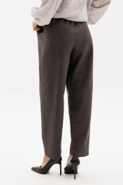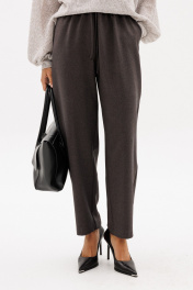 Брюки выполнены из костюмной ткани. Брюки зауженные к низу, длиной 7/8, на притачном поясе с эластичной тесьмой. Спереди боковые карманы с наклонным входом, петли в поясе, в которые втянут шнур из основной ткани. Длина брюк: р. 44-48 - 99 см, р. 50-54 - 100,5 см. 44 46 48 50 52 54 Длина сбоку без пояса 99 99 99 100,5 100,5 100,5 Объем по талии 68/98 72/102 76/106 80/110 84/114 88/118 Объем по бедрам 112 116 120 124 128 132 Ширина пояса 5 5 5 5 5 5