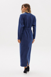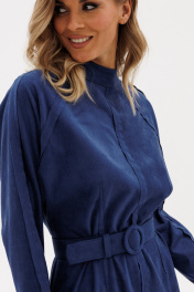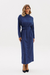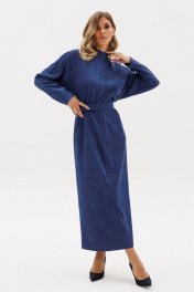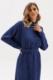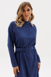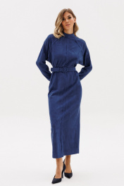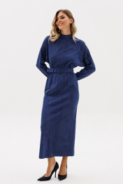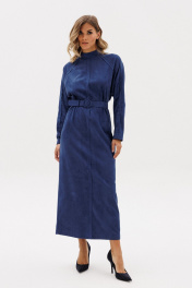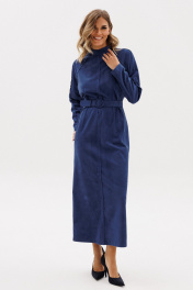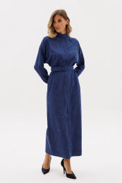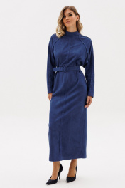 Платье выполнено из тонкой искуственной замши. Платье полуприлегающего силуэта, длиной миди. Платье отрезное по линии талии. Спереди и на спинке талиевые вытачки и средний шов. Застежка на потайную молнию в среднем шве спинки. Воротник-стойка. Рукав покроя реглан. Средний шов переда, талиевые вытачки, верхний шов рукава и линии реглана обработаны "на лицо". В комплект входит съемный ремень из основной ткани с обтяжной пряжкой. Длина платья: р.44-48 - 130 см, р. 50-54 - 131,5 см. Длина рукава от горловины: р. 44-48 - 72 см, р. 50-54 - 73 см 44 46 48 50 52 54 Длина по центру спинки 130 130 130 131,5 131,5 131,5 Длина рукава 72 72 72 73 73 73 Объем по груди Объем по талии 84 88 92 96 100 104 Объем по бедрам 101 105 109 113 117 121 Объем по низу 96 100 104 108 112 116 Объем рукава вверху 49 51 53 53 55 57 Объем рукава внизу 23 23 23 24,5 24,5 24,5