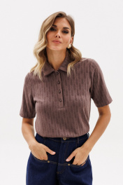 Джемпер выполнен из трикотажного полотна с рисунком. Джемпер полуприлегающего силуэта, длиной выше линии бедер. Спереди застежка на пуговицы. Воротник стояче-отложной. Плечевой шов удлинен. Рукав втачного покроя, одношовный, выше линии локтя. Длина джемпера: р. 44-48 - 58 см, р. 50-54 - 59,5 см. Длина рукава: р. 44-48 - 26 см, р. 50-54 - 27 см 44 46 48 50 52 54 Длина по центру спинки 58 58 58 59,5 59,5 59,5 Длина рукава от горловины 26 26 26 27 27 27 Объем по груди 92 96 100 104 108 112 Объем по талии 92 96 100 104 108 112 Объем по низу 87 91 95 99 103 107 Объем рукава вверху 32 34 36 36 38 40 Объем рукава внизу 27 27 27 28,5 28,5 28,5