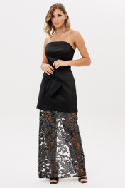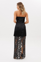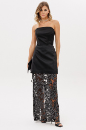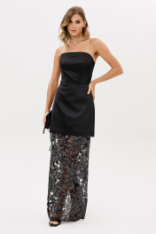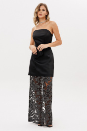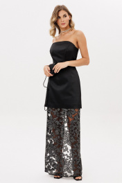 Юбка выполнена из сетки с вышивкой с пайетками. Юбка прямого силуэта, длиной миди. Юбка на притачном поясе, застегивающимя на петлю и пуговицу и на потайную молнию сзади в среднем шве. Юбка без подкладки. Длина юбки - 103 см. 42 44 46 Длина по переду с поясом 103 103 103 Объем по талии 68 72 76 Объем по бедрам 92 96 100 Объем по низу 84 88 92 Ширина пояса 4,5 4,5 4,5