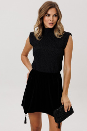 Юбка выполнена из бархата. Юбка прямого силуэта, длиной выше колена. Юбка на цельнокроеном поясе с эластичной тесьмой. Низ юбки фигурной формы. Юбка декорирована по низу ""кисточками"" из бахромы. Длина юбки с поясом: р. 42-46 - 38 см Гарантийный срок не установлен ГОСТ 31409-2009