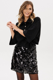 Юбка выполнена из трикотажного полотна в крупные пайетки на сетке. Юбка прямого силуэта, длиной выше колена. Юбка на притачном поясе из бархата, с эластичной тесьмой. Юбка на отлетной по низу подкладке. Длина юбки с поясом: р. 44-48 - 50,5 см, р. 50-54 - 52 см. Гарантийный срок не установлен ГОСТ 31409-2009
