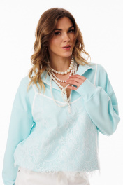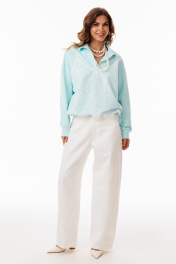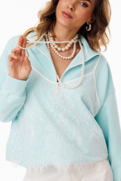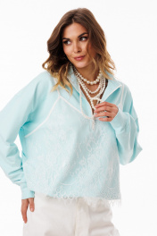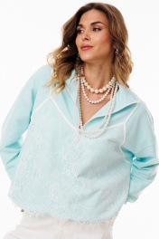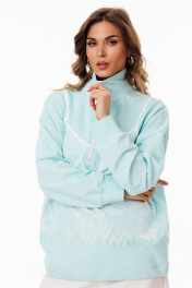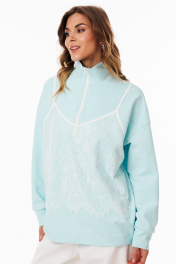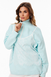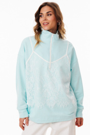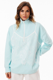 Джемпер выполнен из трикотажного полотна. Джемпер прямого силуэта, покроя oversize. Длиной до линии бедер. По переду обработана застёжка на тракторную молнию от линии груди до верха. Горловина округлой формы, обработана воротником стойкой. Плечевой шов удлинен. Рукав рубашечного покроя, одношовный. Низ рукава обработан притачной манжетой. По низу джемпера обработана эластичная тесьма с фиксаторами. Джемпер декорирован по переду кружевом, имитирующим перед топа на бретелях. Длина джемпера: р. 44-48 - 69,5 см, р. 50-54 - 70,5 см. Длина рукава от горловины: р. 44-48 - 77 см, р. 50-54 - 78 см. ДЖЕМПЕР м. 3056 44 46 48 50 52 54 Длина по центру спинки 69,5 69,5 69,5 70,5 70,5 70,5 Длина рукава от горловины 77 77 77 78 78 78 Объем по груди 134 138 142 146 150 154 Объем по талии 124 128 132 136 140 144 Объем по низу 110 114 118 122 126 130 Объем рукава вверху 42 44 46 46 48 50 Объем рукава внизу 21,5 21,5 21,5 23,5 23,5 23,5