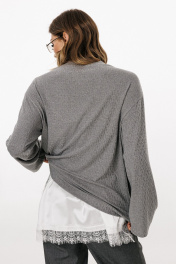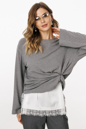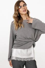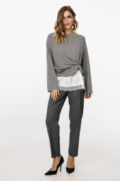 Джемпер выполнен из трикотажного полотна с рисунком. Джемпер прямого силуэта, длиной до линии бедра. Перед и спинка цельные. Горловина округлой формы, обработана широкой бейкой. Плечевой шов удлинен. Рукав одношовный, прямой. Длина джемпера: р.44-48 - 66 см, р.50-54 - 67 см. Длина рукава от горловины: р.44-48 - 73,5 см, р.50-54 - 74,5 см. ДЖЕМПЕР м. 3059 44 46 48 50 52 54 Длина по центру спинки 66 66 66 67 67 67 Длина рукава от горловины 73,5 73,5 73,5 74,5 74,5 74,5 Объем по груди 110 114 118 122 126 130 Объем по талии 109 113 117 121 125 129 Объем по низу 108 112 116 120 124 128 Объем рукава вверху 39 41 43 43 45 47 Объем рукава внизу 32 32 32 34 34 34