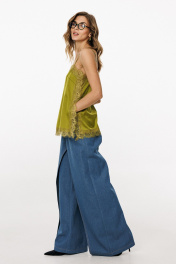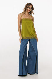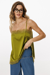 Топ выполнен из тонкого атласа. Топ прямого силуэта длиной выше линии бедер. По переду обработаны нагрудные вытачки. Топ на регулируемых бретелях из основной ткани. В боковых швах обработаны разрезы. Топ декорирован тесьмой-кружевом по горловинам переда и спинки, по боковым и по низу. Длина топа: р. 42-46 - 50 см, р. 48-52 - 52 см. ТОП м. 3064 42 44 46 48 50 52 Длина по центру спинки 50 50 50 52 52 52