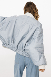 Куртка выполнена из плащевой ткани с утеплителем Isosoft. Куртка О-образного силуэта, длиной выше линии бедер. Куртка двусторонняя. Спереди застежка на молнию и карманы. Рукав покроя кимоно переходящий в кокетки спереди и по спинке. Низ рукава на притачной манжете из трикотажного довяза. Горловина округлой формы с вортником-стойкой из трикотажного довяза. Низ куртки на притачном поясе с эластичной тесьмой внутри. Одна из сторон куртки декорирована на спинке нашивкой из натуральной кожи. Температурный режим от +5*С до -5*С. Длина куртки - 58 см. Длина рукава от горловины - 75 см. КУРТКА м. 3034 44 46 48 Длина по центру спинки 58 58 58 Длина рукава 74 74 74 Объем по груди Объем по талии Объем по низу 98/164 98/165 98/166 Объем рукава вверху 70 70 70 Объем рукава внизу 21 21 21