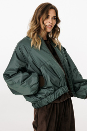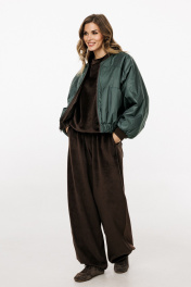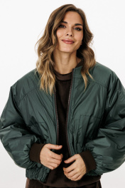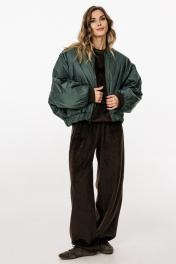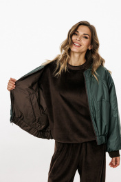 Куртка выполнена из плащевой ткани с утеплителем Isosoft. Куртка О-образного силуэта, длиной выше линии бедер. Куртка двусторонняя. Спереди застежка на молнию и карманы. Рукав покроя кимоно переходящий в кокетки спереди и по спинке. Низ рукава на притачной манжете из трикотажного довяза. Горловина округлой формы с вортником-стойкой из трикотажного довяза. Низ куртки на притачном поясе с эластичной тесьмой внутри. Одна из сторон куртки декорирована на спинке нашивкой из натуральной кожи. Температурный режим от +5*С до -5*С. Длина куртки - 58 см. Длина рукава от горловины - 75 см. КУРТКА м. 3034 44 46 48 Длина по центру спинки 58 58 58 Длина рукава 74 74 74 Объем по груди Объем по талии Объем по низу 98/164 98/165 98/166 Объем рукава вверху 70 70 70 Объем рукава внизу 21 21 21