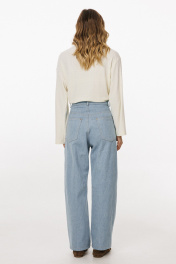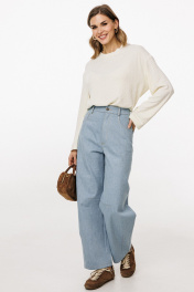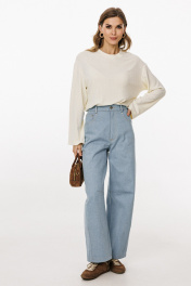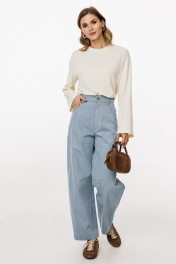 Джинсы-багги выполнены из плотного джинса. Брюки на притачном поясе, длиной до линии щиколотки, расширенные от бедер и слегка зауженные к низу. Спереди боковые карманы с фигурным входом. Застежка на пуговицу и молнию с гульфиком. На задних частях кокетки и накладные карманы. На передней и задней части коленные вытачки. Длина брюк: р.44-48 - 102 см, р. 50-54 - 103,5 см БРЮКИ м. 3043 44 46 48 50 52 54 Длина сбоку с поясом 102 102 102 103,5 103,5 103,5 Объем по талии 75 79 83 87 91 95 Объем по бедрам 106 110 114 118 122 126 Ширина пояса 4 4 4 4 4 4
