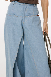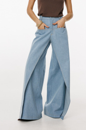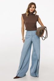 Джинсы-клеш выполнены из плотного джинса. Брюки на притачном поясе, длиной до пола, расширенные к низу. Спереди верхние отлетные части, боковые карманы с фигурным входом. Застежка на пуговицу и молнию с гульфиком. На задних частях кокетки и накладные карманы. По переду брюки декорированы брендированной нашивкой из натуральной кожи. Длина брюк: р.44-48 - 102 см, р. 50-54 - 103,5 см БРЮКИ м. 3044 44 46 48 50 52 54 Длина сбоку с поясом 110 110 110 111,5 111,5 111,5 Объем по талии 64-78 68/82 72/86 76/90 80/94 84/98 Объем по бедрам 106 110 114 118 122 126 Ширина пояса 4 4 4 4 4 4