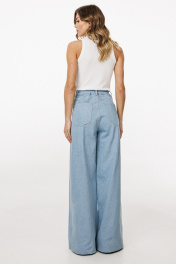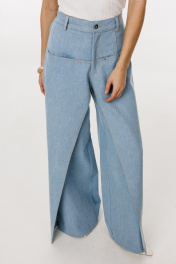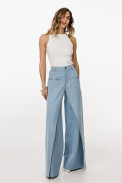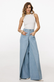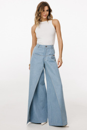 Джинсы-клеш выполнены из плотного джинса. Брюки на притачном поясе, длиной до пола, расширенные к низу. Спереди верхние отлетные части, боковые карманы с фигурным входом. Застежка на пуговицу и молнию с гульфиком. На задних частях кокетки и накладные карманы. По переду брюки декорированы брендированной нашивкой из натуральной кожи. Длина брюк: р.44-48 - 102 см, р. 50-54 - 103,5 см БРЮКИ м. 3044 44 46 48 50 52 54 Длина сбоку с поясом 110 110 110 111,5 111,5 111,5 Объем по талии 64-78 68/82 72/86 76/90 80/94 84/98 Объем по бедрам 106 110 114 118 122 126 Ширина пояса 4 4 4 4 4 4