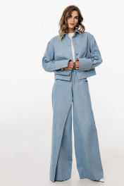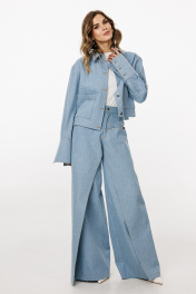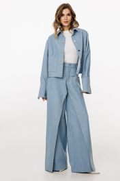Джинсы-клеш выполнены из плотного джинса. Брюки на притачном поясе, длиной до пола, расширенные к низу. Спереди верхние отлетные части, боковые карманы с фигурным входом. Застежка на пуговицу и молнию с гульфиком. На задних частях кокетки и накладные карманы. По переду брюки декорированы брендированной нашивкой из натуральной кожи. Длина брюк: р.44-48 - 102 см, р. 50-54 - 103,5 см БРЮКИ м. 3044 44 46 48 50 52 54 Длина сбоку с поясом 110 110 110 111,5 111,5 111,5 Объем по талии 64-78 68/82 72/86 76/90 80/94 84/98 Объем по бедрам 106 110 114 118 122 126 Ширина пояса 4 4 4 4 4 4