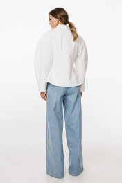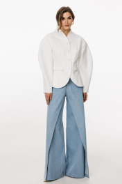 Джинсы-клеш выполнены из плотного джинса. Брюки на притачном поясе, длиной до пола, расширенные к низу. Спереди верхние отлетные части, боковые карманы с фигурным входом. Застежка на пуговицу и молнию с гульфиком. На задних частях кокетки и накладные карманы. По переду брюки декорированы брендированной нашивкой из натуральной кожи. Длина брюк: р.44-48 - 102 см, р. 50-54 - 103,5 см БРЮКИ м. 3044 44 46 48 50 52 54 Длина сбоку с поясом 110 110 110 111,5 111,5 111,5 Объем по талии 64-78 68/82 72/86 76/90 80/94 84/98 Объем по бедрам 106 110 114 118 122 126 Ширина пояса 4 4 4 4 4 4
