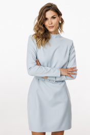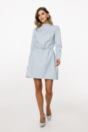 Платье выполнено из костюмно-плательной ткани. Платье Х-образного силуэта длиной выше линии колена. По переду лифа обработаны плечевые вытачки и нагрудные вытачки от горловины. Застежка на потайную молнию в среднем шве спинки. Горловина округлой формы в виде цельнокроеной стойки. Плечевой шов удлинен. Рукав втачного покроя, одношовный. Юбка прямого силуэта с расширением по линии бедер. Платье на притачной по низу подкладке. В комплект входит съемный ремень из основной ткани с обтяжной пряжко. Длина платья по центру спинки - 86,5 см. Длина рукава - 62 см. ПЛАТЬЕ м. 3046 42 44 46 Длина по центру спинки 86,5 86,5 86,5 Длина рукава 62 62 62 Объем по груди 88 92 96 Объем по талии 71 75 79 Объем по бедрам 104 108 112 Объем по низу 114 118 122 Объем рукава вверху 30,5 32,5 34,5 Объем рукава внизу 22 22 22