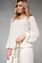 Джемпер прямого силуэта с V-образным вырезом и длинными рукавами. Рукава по низу на резинке.