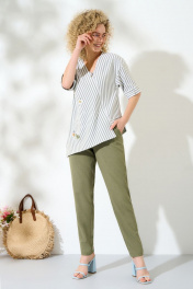 Льняной костюм из брюк и блузона с асимметричной молнией и карманами Euromoda 417 хаки-однотон