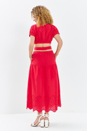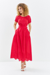 Платье отрезное по линии талии с акцентными вырезами на талии — главный визуальный магнит этой модели. Они деликатно подчеркивают изгибы фигуры, создавая интригующий силуэт, который остается легким и изящным. горловина изделия- лодоска, лиф и голоровина изделия с небольшшой сборкой. Рукав- короткий фонарик. застежка лифа- петля- пуговица на спинке. пояс на талии застегивается на петлю- пуговицу(пуговичку можно переешить для регулировки обхвата талии, верхняя часть юбки на резинке. Низ юбки платья украшен роскошным шитьем (ришелье). Сложный перфорированный узор с фестончатым краем придает подолу особую фактурность и премиальный вид в стиле «бохо-шик». Многоярусная юбка и кокетливые рукава-фонарики добавляют образу динамики. При каждом шаге платье буквально «дышит», создавая вокруг вас ореол нежности. Комфорт в деталях: Натуральная ткань дарит прохладу, а функциональные карманы в боковых швах добавляют платью практичности, делая его идеальным для долгих летних прогулок.