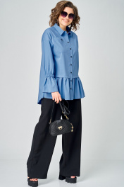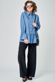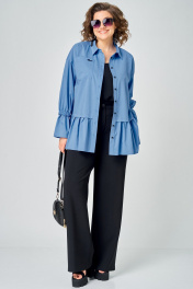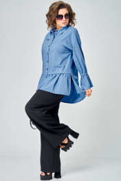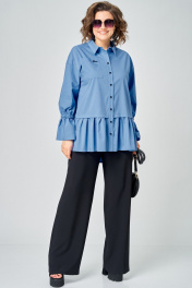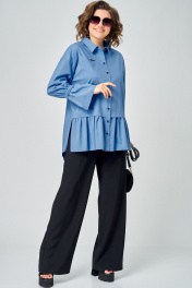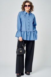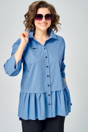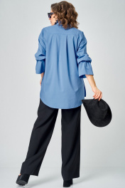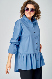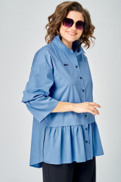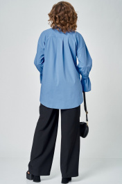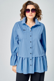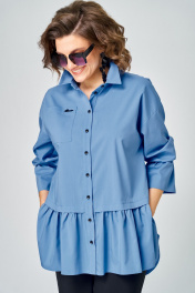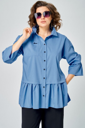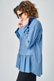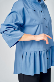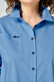 Блузка женская нарядно повседневного элегантного стиля, прямого силуэта с фигурным низом выполнена из шикарного дышащего хлопка. Вырез горловины воротник на стойке рубашечного типа, застежка доверху на обметанные петли и пуговицы. Рукав спущенный, втачной по низу на притачной манжете, в боковых швах обработаны разрезы. На полочке функциональный накладной карман, изящная металлическая бренд лейбл и контрасные пуговицы придают изделию стильный и современный дизайн. Подрез по полочке делает изделие трендом сезона. По спинке фигурная кокетка и встречная складка, создают идеальную посадку. Универсальный силуэт, элегантный крой, стильный дизайн - все детали только подчеркивают достоинства фигуры, а фасон создает трендовый образ.