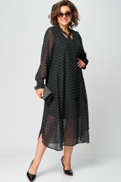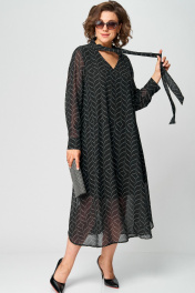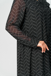 Платье женское нарядно-повседневное А-образного силуэта, выполнено из креп-шифона. Платье на трикотажной подкладке. Вырез горловины V-образный с втачной стойкой переходящей в бант. Рукав втаной по низу на притачной манжете. Декором платья служит принт самой ткани.