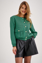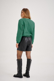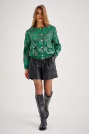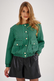 Комплект из бомбера и шорт. Бомбер - хорошее дополнение к межсезонному гардеробу. Фактурная ткань из вискозы с добавлением полиэстера, отлично держит форму. У модели чёрно-зелёная расцветка с узором “гусиная лапка”, карманы с клапанами и спущенная линия плеча. Бомбер стильно сочетается с шортами из эко-кожи. Шорты из плотной эко-кожи, с двумя складками. Шорты с завышенной талией визуально делают фигуру стройнее, имеется резинка на поясе. Выразительный дизайн и безупречное качество делают комплект непременным элементом гардероба каждой современной женщины.