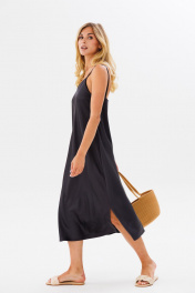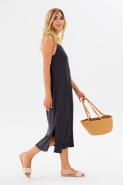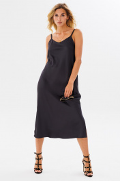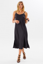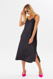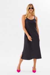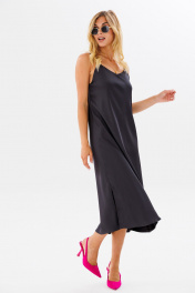 Платье на бретелях комбинация из текстиля для женственного стиля FAMA 24030 темный_графит