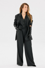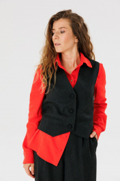 Жилет, выполнен в ткани из поливискозы - тренд в мире моды. Жилетка с имитацией боковых карманов, отлично подчеркивает женственный силуэт. Отлично сочетается с брюками, юбкой и жакетом, также может быть и отдельной единицей в гардеробе. Длина изделия 48 см