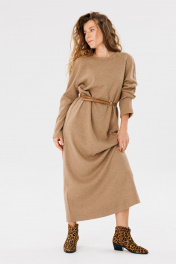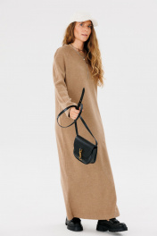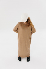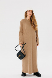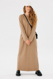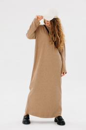 Длинное оверсайз платье из трикотажа с прямым кроем для повседневной носки FAMA 24046 коричневый