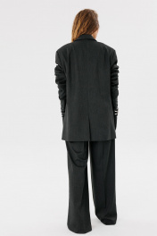 Костюм ТРОЙКА выполнен в ткани из поливискозы - тренд сезона. Жакет оверсайз, прямого кроя с боковыми прорезными карманами, длина жакета 76 см. Жилетка с имитацией боковых карманов, отлично подчеркивает женственный силуэт, длина изделия 48 см. Брюки Палаццо прямого классического кроя с карманами,длина изделия 110 см