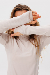 Водолазка прилегающего силуэта, длтной до линии бёдер. Рукав длинный втачной с отверстием для большего пальца. Базовая вещь в гардеробе.