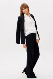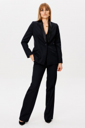 Жакет приталенный с лацканами в атласной ткани. Застежка спереди на 1 пуговицу. Выполнен в костюмной премиальной ткани с содержанием шерсти. Карамны боковые прорезные. Длтна изделия 70 см