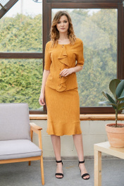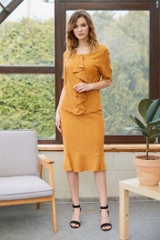 Летний комплект блузка и юбка с разрезом Fantazia Mod 3489 горчица