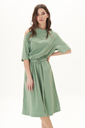 Весенний сезон всегда знаменуется обновлением гардероба, обязательным наличием в котором будут, конечно же, платья! Стильное и лаконичное миди! Эта универсальная модель станет отличным базовым предметом вашего гардероба. Свободный А-образный силуэт, рубашечный покрой, ассиметричная горловина, изысканный открытый участок плеча, эластичная тесьма по линии талии, съёмный пояс на полукольцах. Длина платья около 107 см, длина рукава около 30 см.