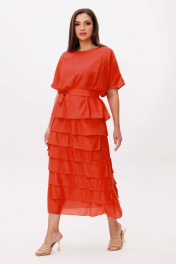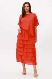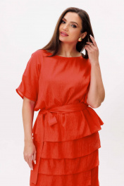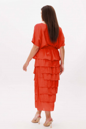 Летний комплект блузы и юбки из вискозы с эффектными воланами Fantazia Mod 4473 апельсин
