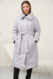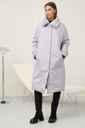Стёганое демисезонное пальто с отстегивающимся меховым воротником Fantazia Mod 4593 серый