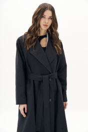Тренчкот не выходит из моды с тех пор, как Коко Шанель представила этот вид одежды в женской, ведь до этого тренч являлся исключительно мужской одеждой. Сегодня этот вид плаща можно смело назвать базовым, его актуальность переходит из сезона в сезон. Классический вариант тренча покроя реглан в удлинённом варианте с поясом, отложным расширенным пиджачным воротником, встречной складкой по спинке, подрезом по переду и двубортной застёжкой. Полочки с боковыми карманами в рельефе и прорезными листочками в верхней части. Все фигурные линии отделочных деталей подчёркнуты широкими отделочными строчками. В качестве фурнитуры выбраны стильные пуговицы. Плащ на отлетной по линии низа подкладке. Длина изделия по спинке около 120 см. Длина рукава с плечом около 75 см.