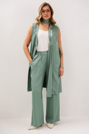 Зеленый укороченный костюм с жилетом и брюками Fantazia Mod 4787